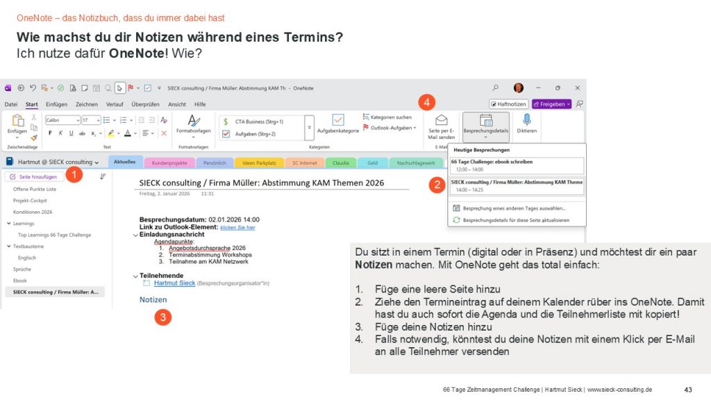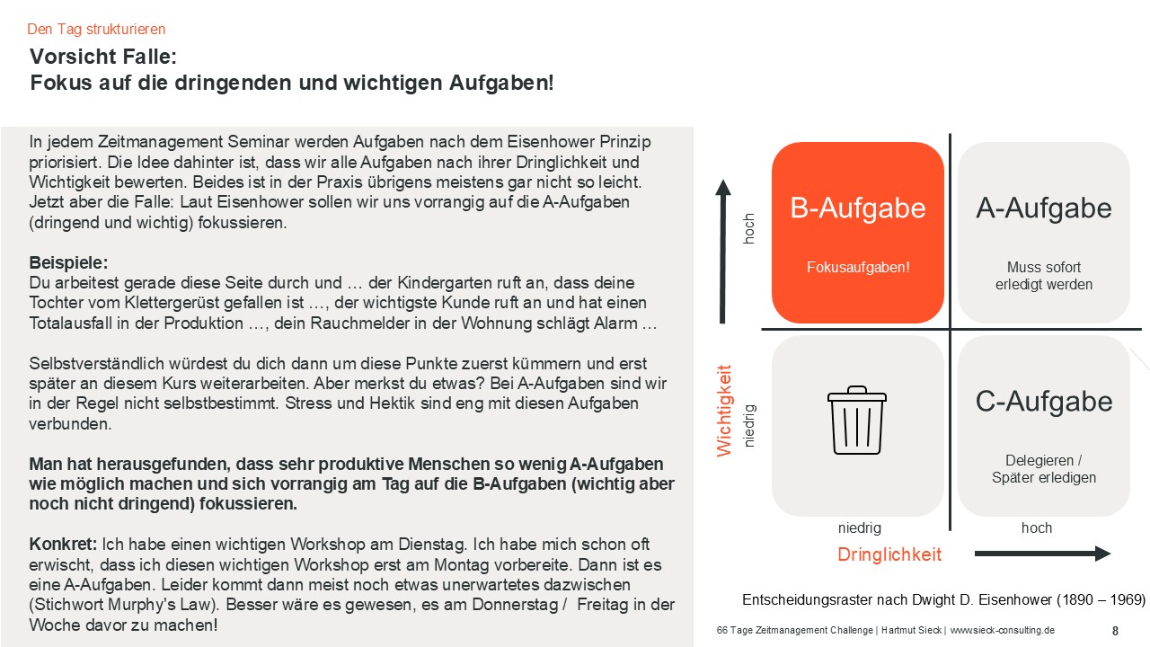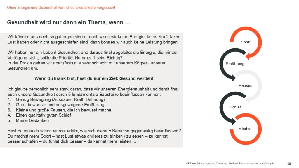 Die richtigen Dinge zur richtigen Zeit bewusst einplanen und auch tun.